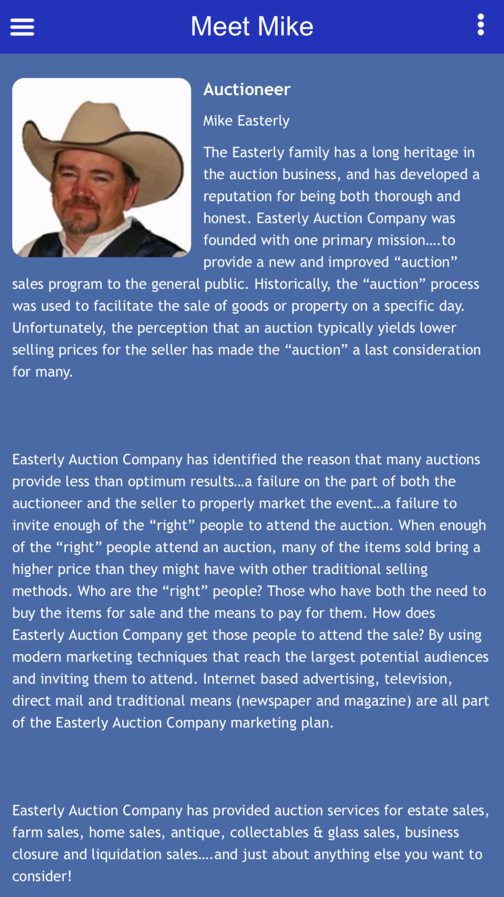 Easterly Auction Company has provided auction services for estate sales, farm sales, home sales, antique, collectibles & glass sales, business closure and liquidation sales….and just about anything else you want to consider!
