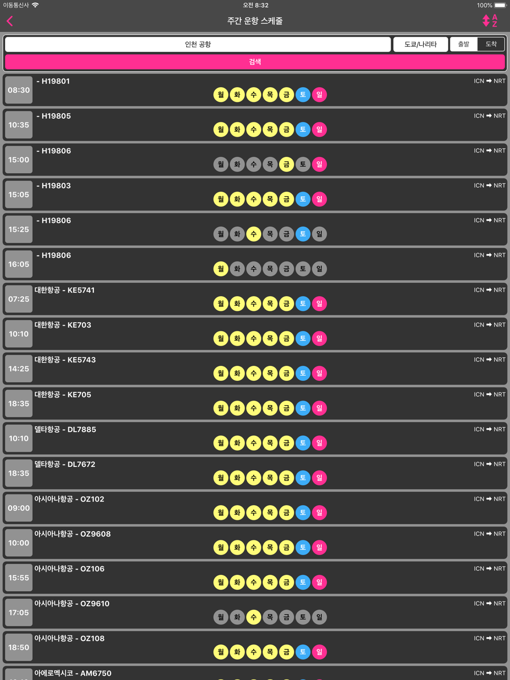 대한민국 모든 공항의 국내선 및 국제선에 대한 출도착 정보를 실시간 조회 할 수 있으며 주간 스케줄 확인도 가능합니다.