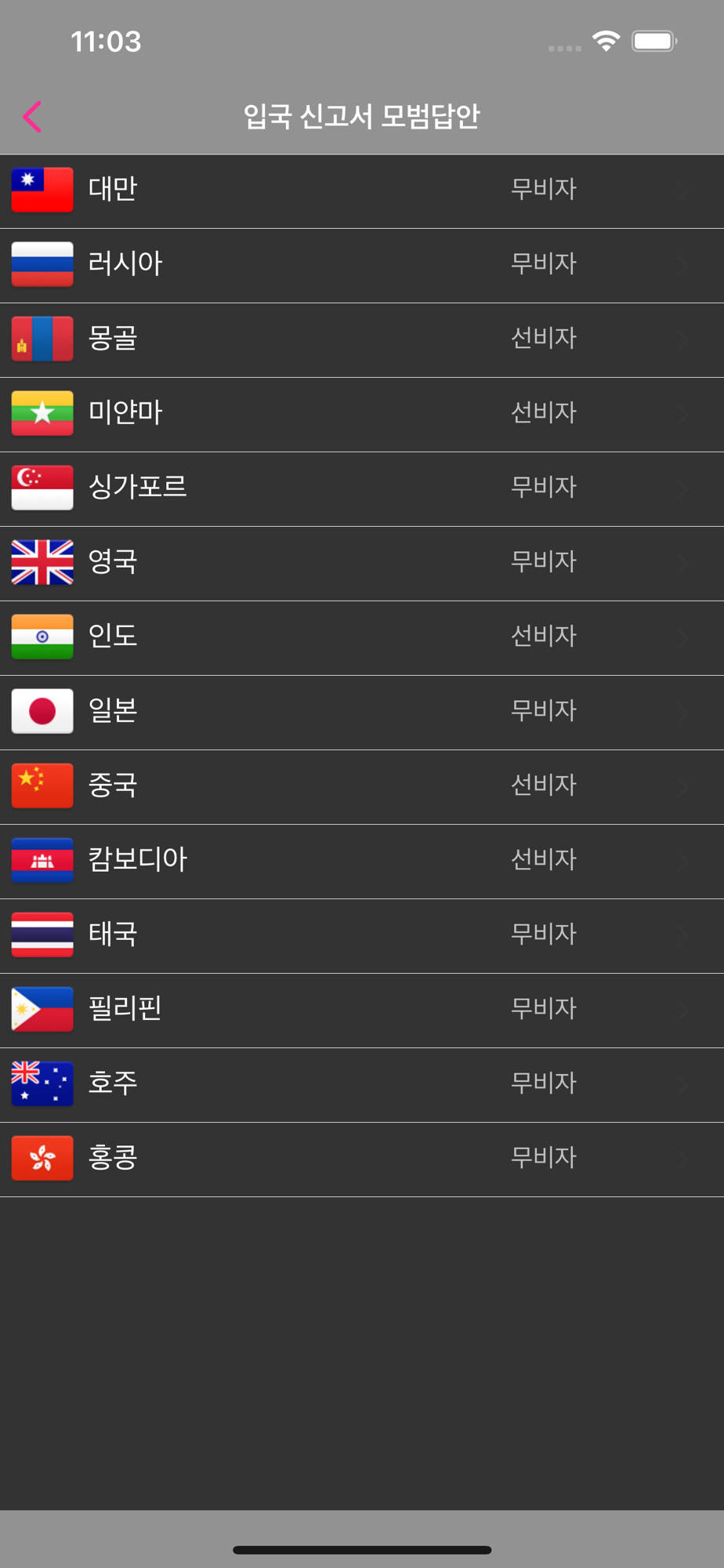 추가적인 기능으로는 주요국가의 시간과 입국 신고서 작성법에 대한 설명서가 추가되어 있습니다.