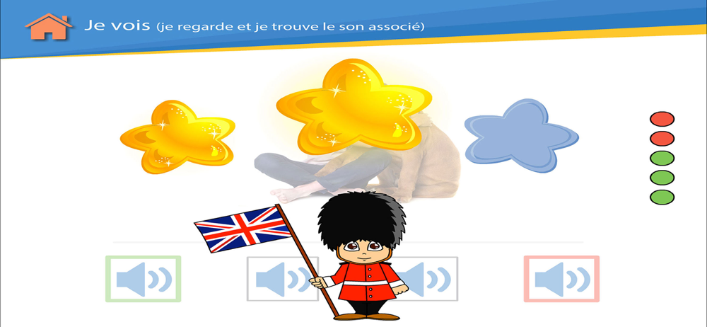 - J'apprends : en appuyant sur les images, l'enfant découvre des mots ou des expressions qu'il peut s'entrainer à répéter à voix haute.