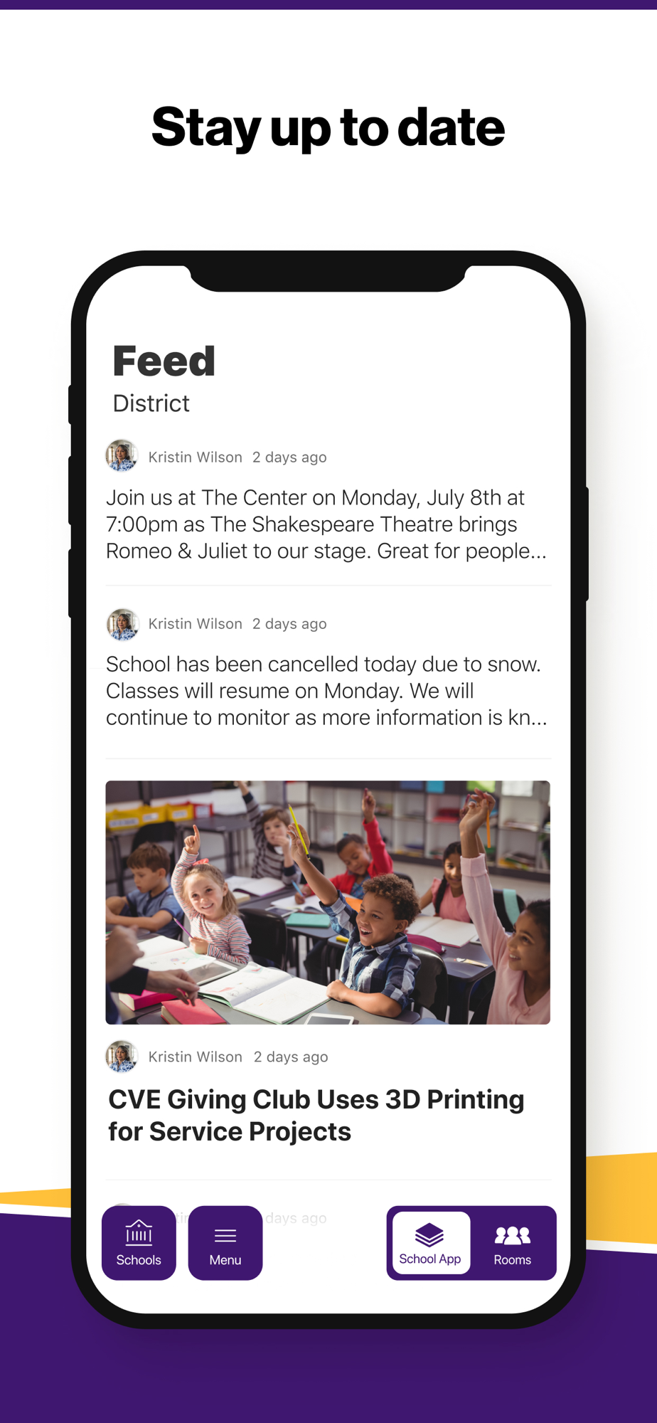 In the Live Feed is where you’ll find updates from administration about what’s going on in the district right now. Whether that’s celebrating a student’s success, or reminding you about an upcoming deadline.