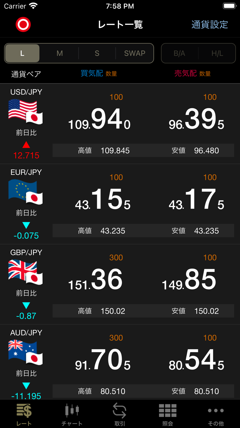 くりっく365取り扱い30通貨ペアのリアルタイムレートを配信。