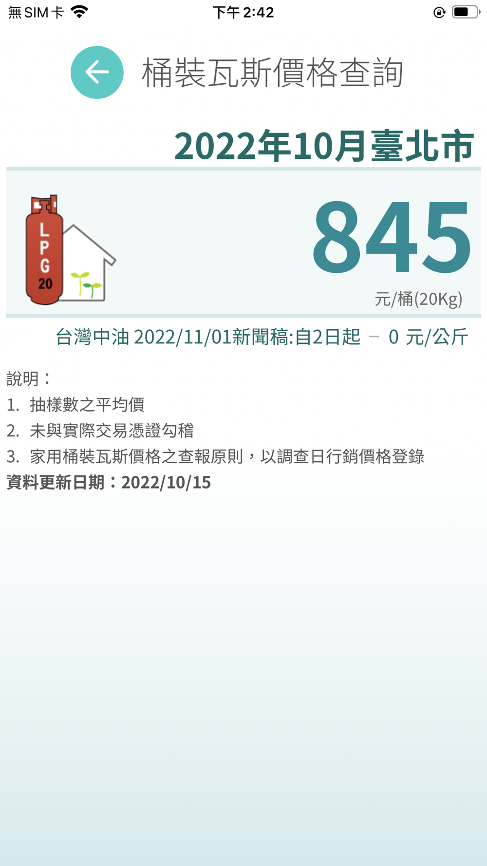 桶裝瓦斯價格 2.2 Update