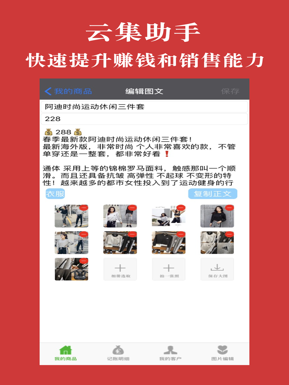 3、有条理的管理好商品信息,方便团队协作共享、多渠道分享等功能。