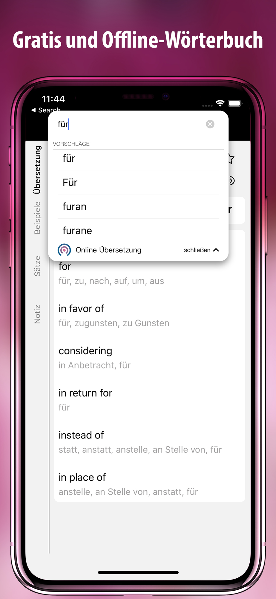 - Offline-Wörterbuch (Keine Internetverbindung notwendig)