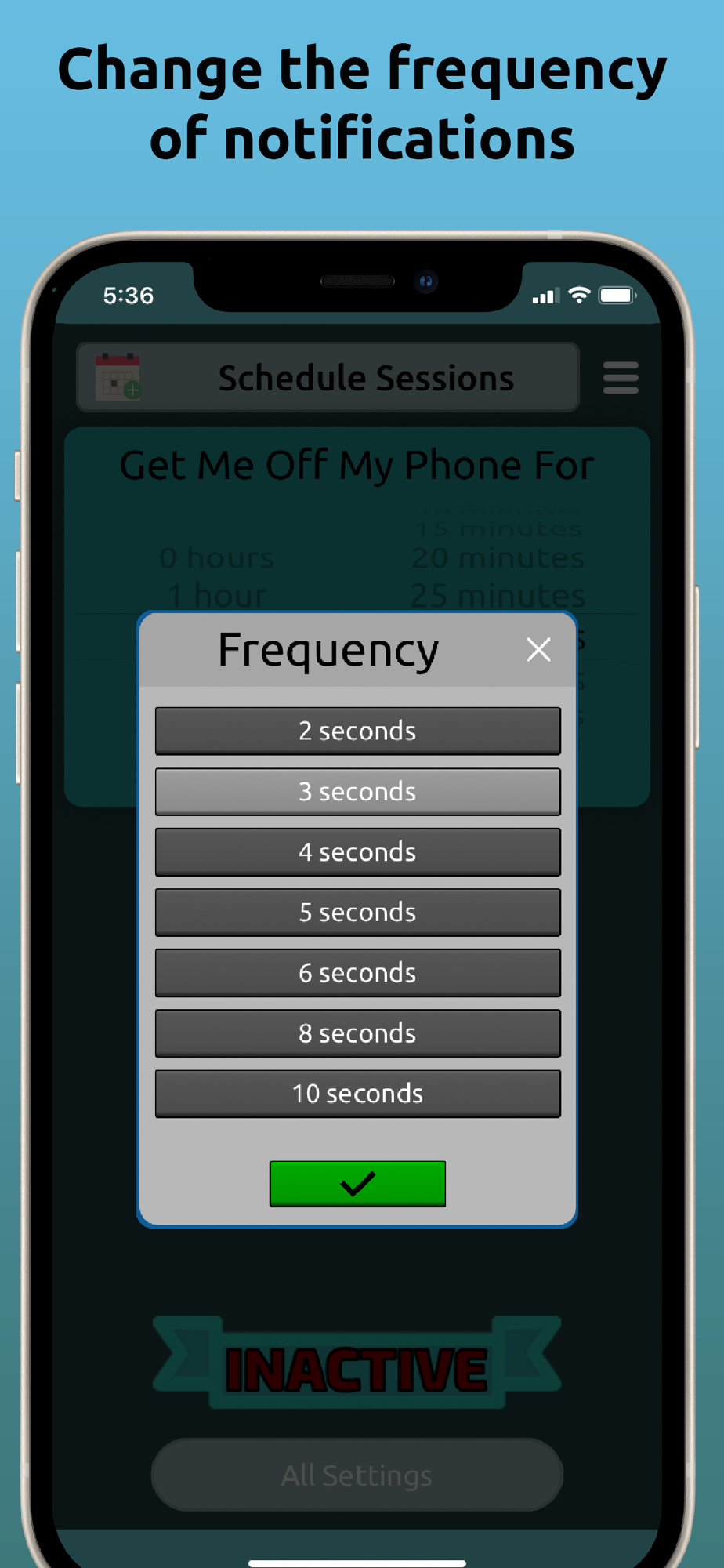 SCHEDULE SESSIONS – Schedule sessions in advance by setting a time during the day, choosing whether you want them to repeat on certain days of the week, and setting a duration. Want to be off your phone at 8am Monday thru Friday for 4 hours? Done. Easy peasy.