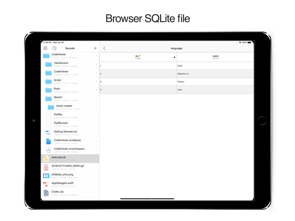 - SQLite Database file Preview.