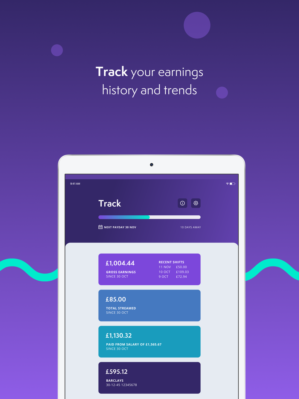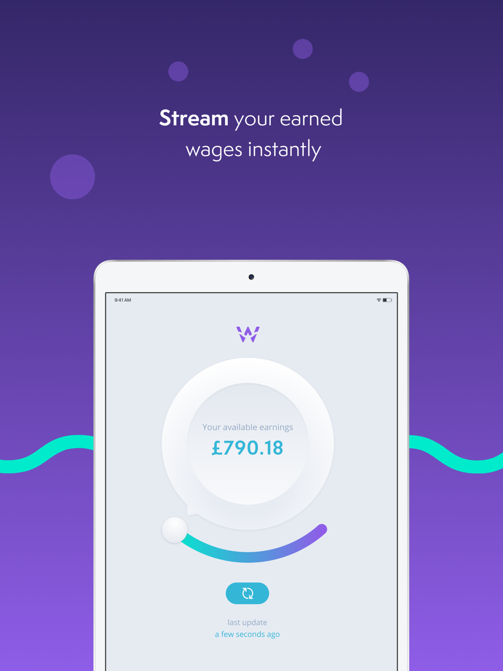 We partner with your employer to give you the power to stream your earned wages into your account, whenever you need them. Our secure, safe technology links to your company’s timekeeping system. If you need it, you can log in, request a transfer, and we’ll stream the amount to your bank account instantly, for a small fee [of £1.75 per transaction].