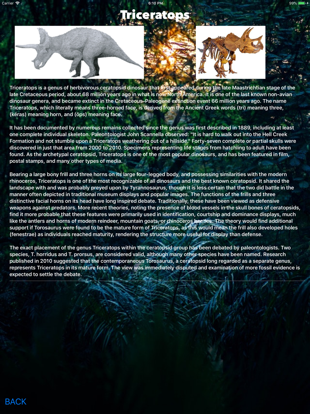 - Extensive information on 24 different dinosaurs (with an additional 24 more coming in December);