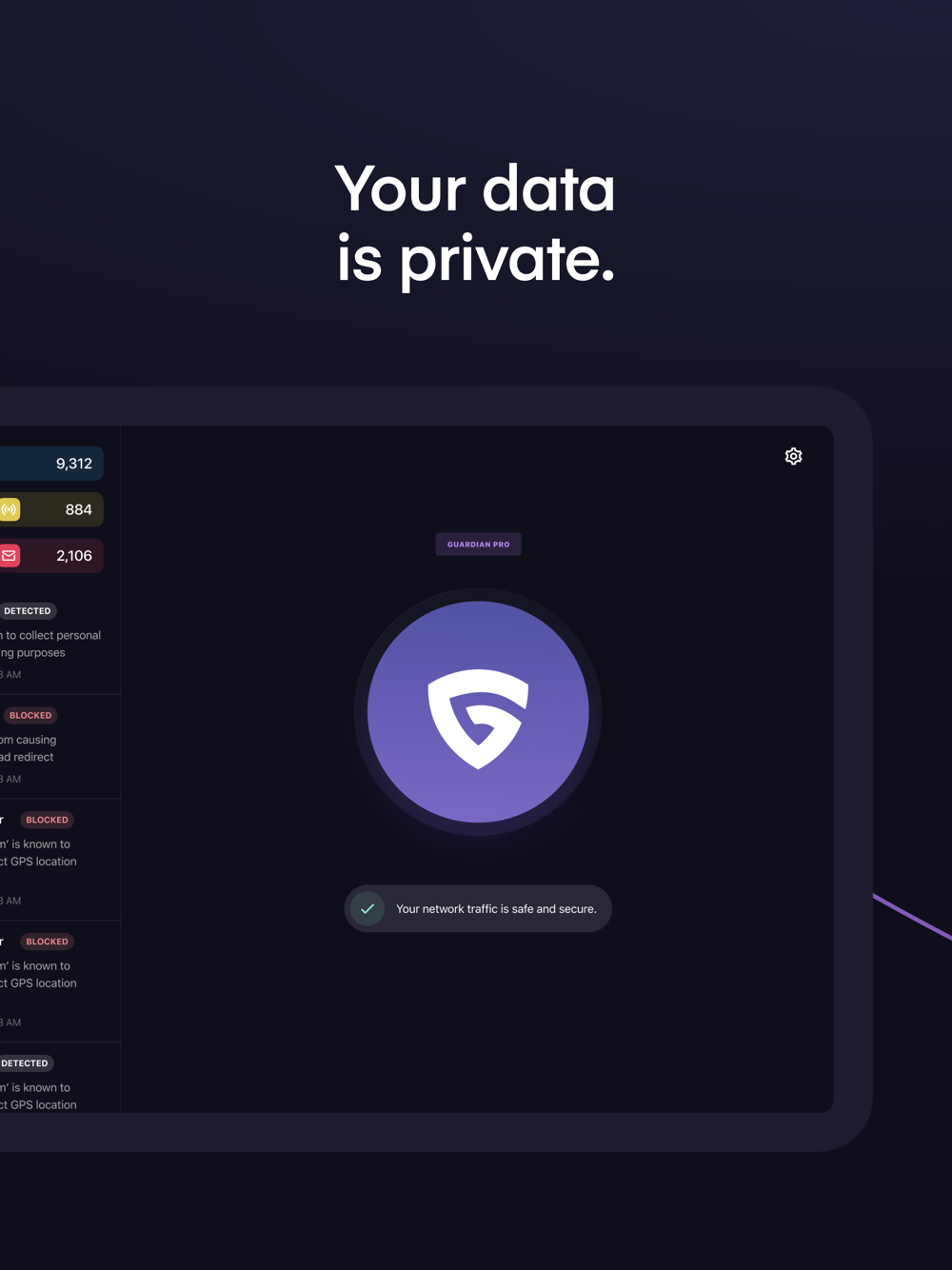 Take back control of your personal data and the information you share while using your devices with the protection of Guardian Firewall and VPN.