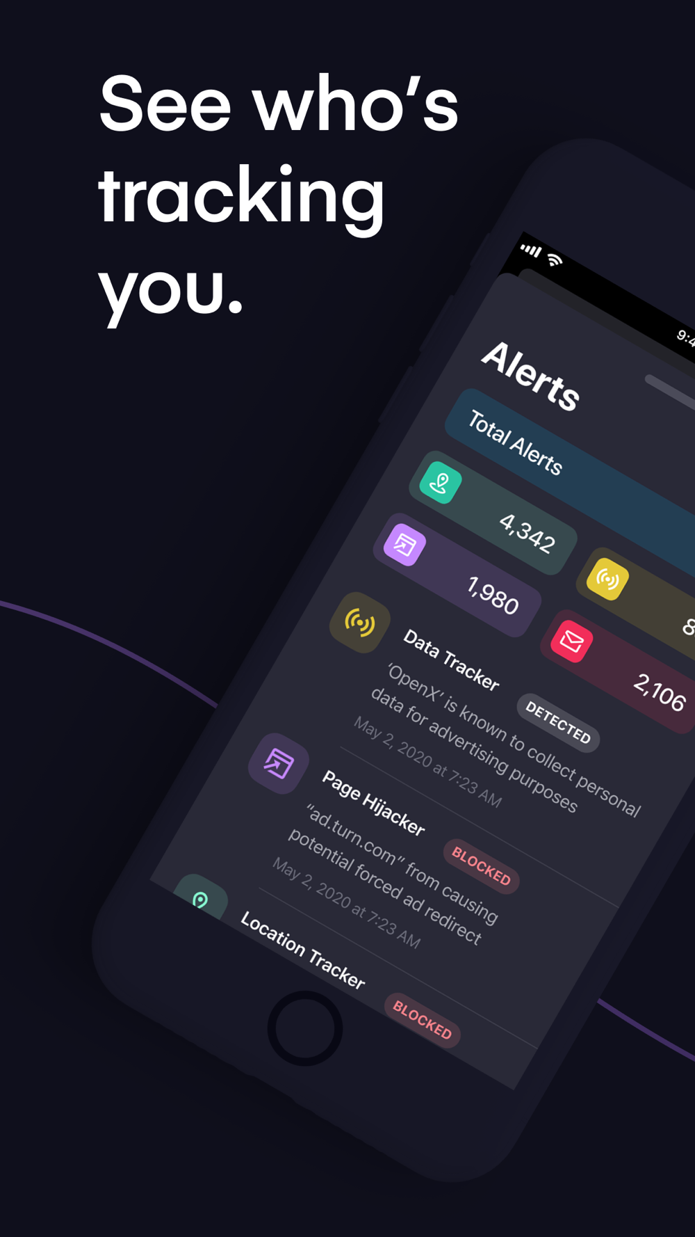 • Alerts and Alert Filtering: Swipe up on the Alert menu to view all blocked, unwanted connections. Easily filter by type, or tap an Alert for more detailed information.
