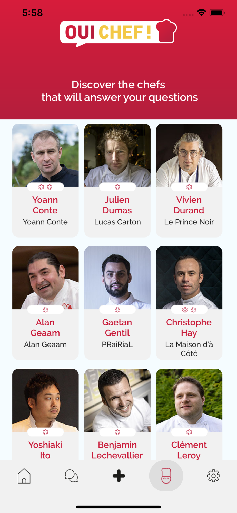 OUI CHEF ! is the first application that allows you to contact Starred chefs and ask them all the questions you want.