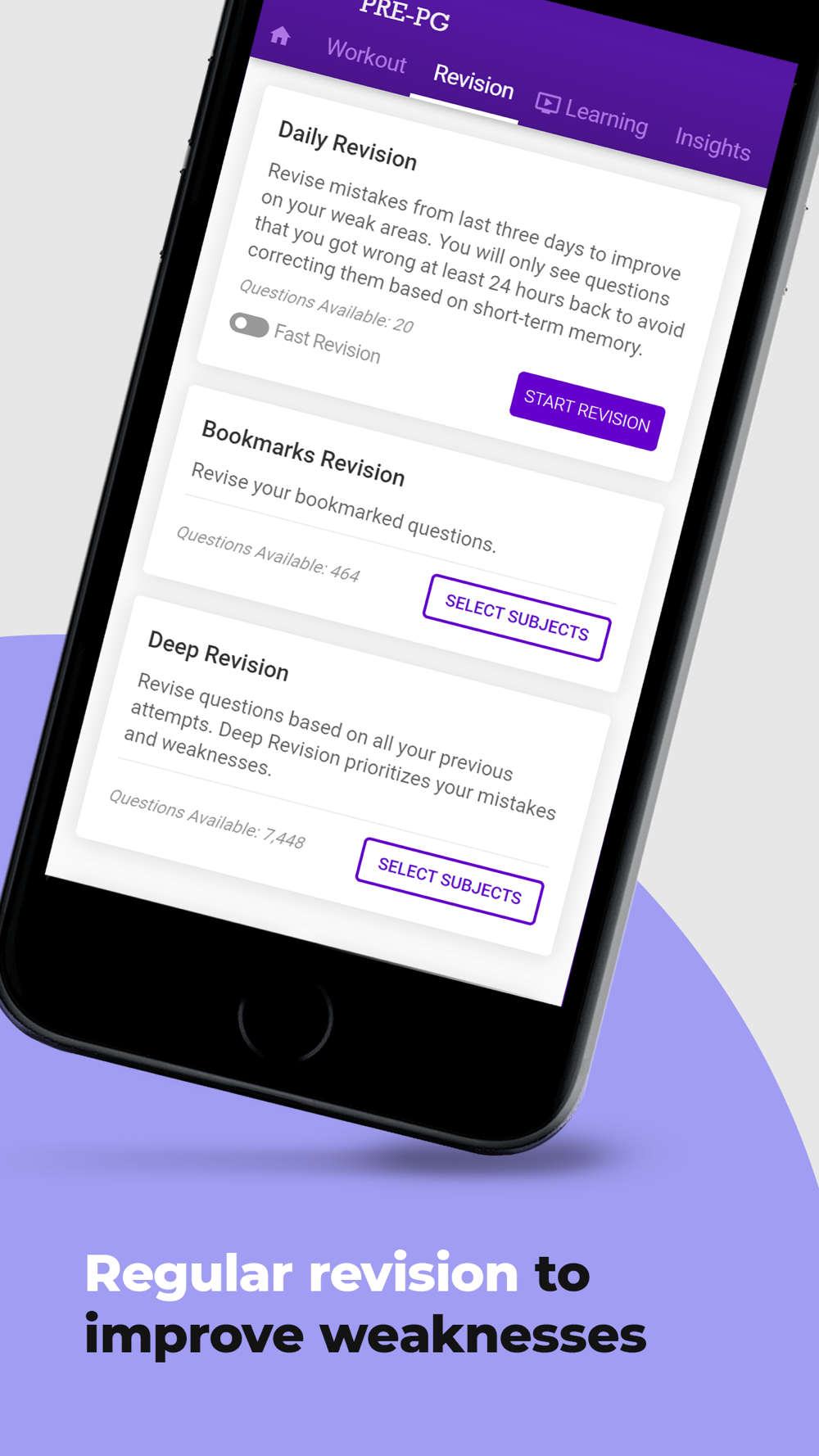 Regular Revision: Want to go a level deeper to develop your NEET PG NExT 2024, NEET SS, AIIMS, INICET, FMGE concepts? Pre-PG Prep has daily revision and deep revision features that will give you questions you got wrong earlier.