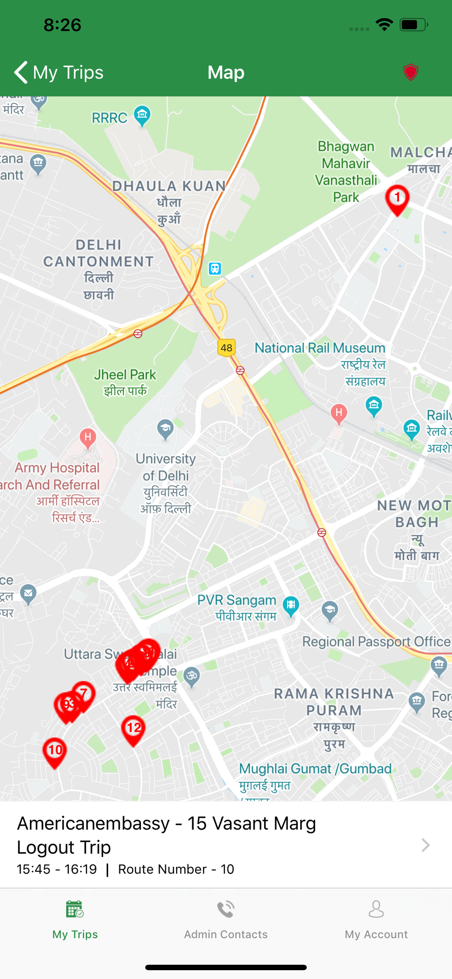 • Real-Time View of the trip on an interactive map that shows the route to reach any specific stoppage from current location.