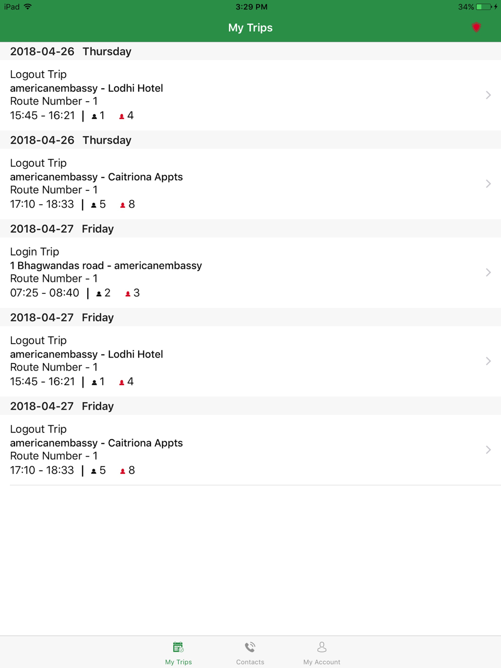 • Paperless Transport Operations by displaying upcoming trips along with employee information and pickup/drop timings and locations.