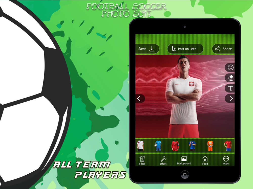 You just need to use this Football team player's suit frames along with your mobile camera to take directly the picture of yourself ( using the front camera ) or for someone else. Take a photo while you see the frame on your device, so the picture comes out perfect. This is the wonderful app for everyone who loves Football & loves to take more photos of Football team suits effects.