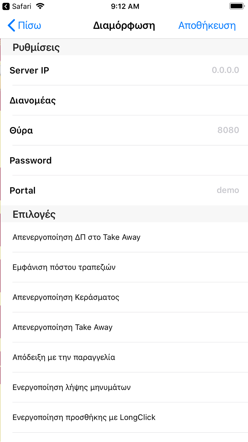 Μια σημαντική δυνατότητα της εφαρμογής, είναι η τοπική καταχώρηση των παραγγελιών στην συσκευή, σε περιπτώσεις που δεν υπάρχει ασύρματο δίκτυο και η μετέπειτα μαζική τους αποστολή. Επίσης, παρέχει έλεγχο του διανομέα μέσω GPS.Τέλος, η εφαρμογή μπορεί να διαχειρισθεί το TakeAway και το Delivery, οπότε μπορεί να χρησιμοποιηθεί και ως θέση εργασίας.