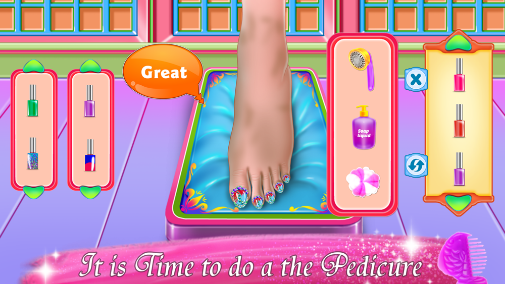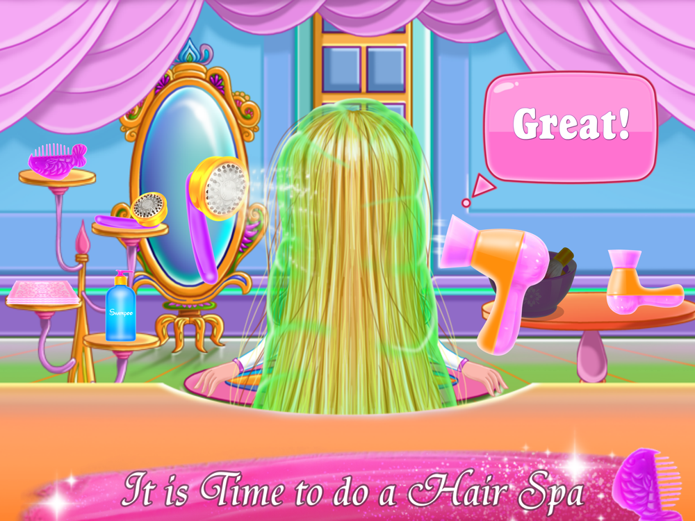Get ready for this girl game and see if you can successfully complete this hairstyle braided challenge. You'll go through three intense phases that are about to change the way this princess look and hope for an improvement. The first thing you'll handle is the face and because of the stress and the latest problems she encounters, you will be having some work to do. Clean her face, remove the pimples, arrange the eyebrows, apply some moisturizing masks and don't let the dark circles get bigger. Once you finished that you could easily move to the next part and here the hair requires a special treatment and attention. When you wash the hair you will apply the special shampoo and rub it until the foam covers it all. Clean it, and then dry it with the towel and also the dryer to make sure all is done. Arrange it and choose the braided hairstyle you want to perform, then make it happens. Add suitable accessories to it and don't be shy to use sparkling jewelry. Now that you finalized this process, you can move to the nails. She requires a special pedicure and you will do your best to achieve it. Clean her feet first, then make a full treatment and designing. Choose the colors you like and be creative. Keep testing your abilities and try to add some innovative aspects to this princess look too. Don't forget to have fun while you play the role as a hairdresser for a princess.