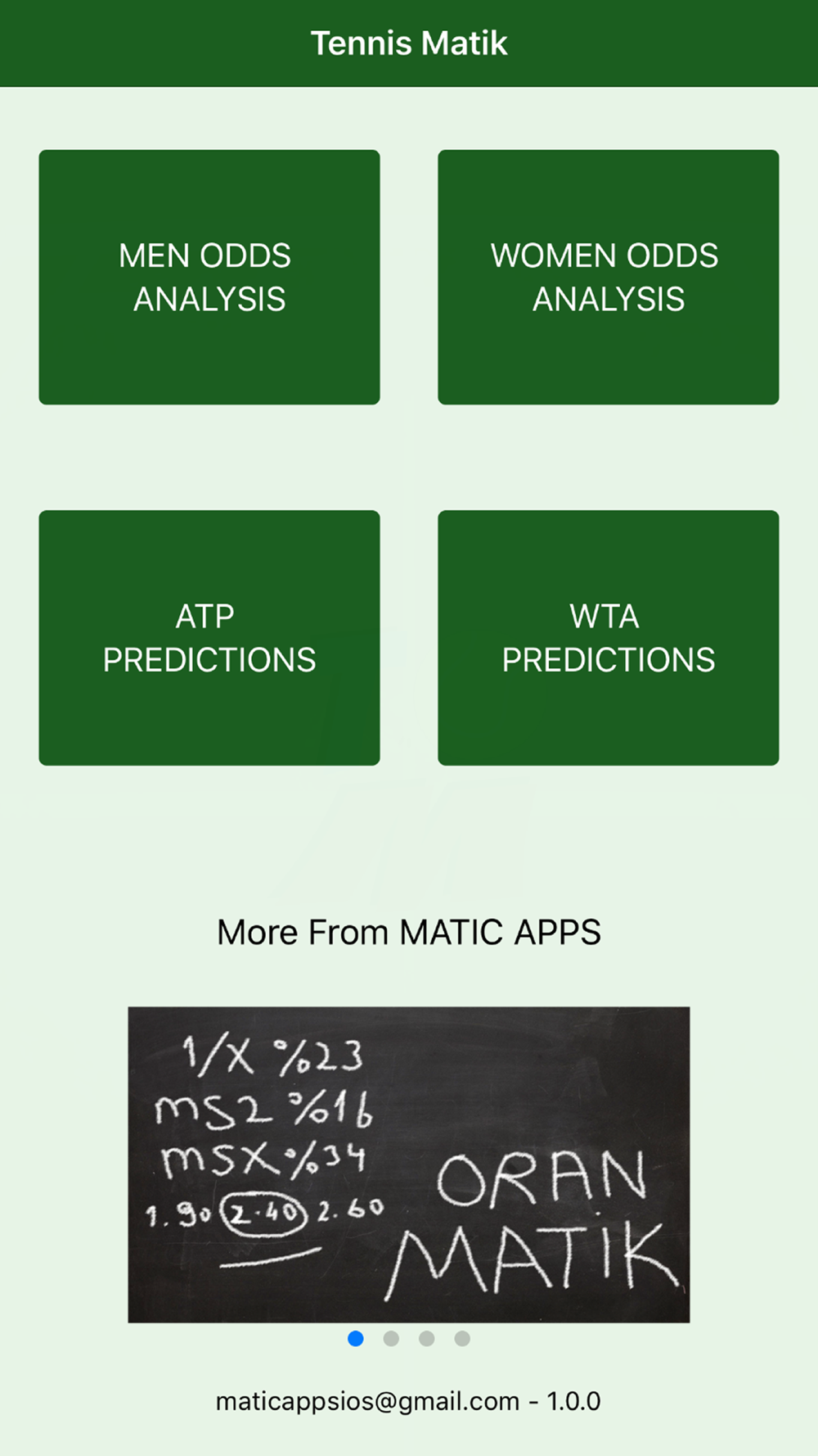 TennisMatik produces two types of estimations based on performance and odds analysis.