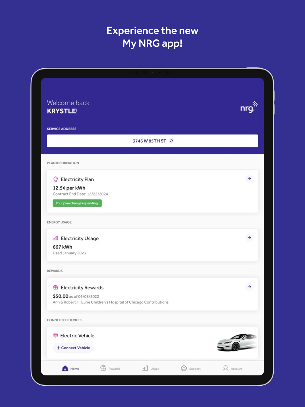My Energy My Way! The My NRG app provides one-stop energy management to our electricity and natural gas customers in the northeast. Log in to easily access your account information on the go. Our Chat support team is available Mon-Fri, 8 am-8 pm EST via the App. Key Features: Manage multiple NRG accounts under one login View, renew, or change your electricity and natural gas plans Add natural gas service (depending on service area) Monitor your energy usage by month and year Track your NRG perks - travel points/miles (redeemable with our partners), charitable contributions, or cash back Link your electric vehicle (Tesla, Jaguar I-Pace, Ford Mustang Mach-E), Nest Thermostat*, and Enphase Solar accounts View our FAQs and contact us through phone, chat, or email Find your utility contact information to report an outage Give us feedback to improve your experience *NRG is not affiliated with Nest or the products and services it markets. Nest Thermostat is a trademark of Nest Labs, Inc. All rights reserved. If you do not see existing Google Nest connected to My NRG app after a version update, please unlink and reconnect.