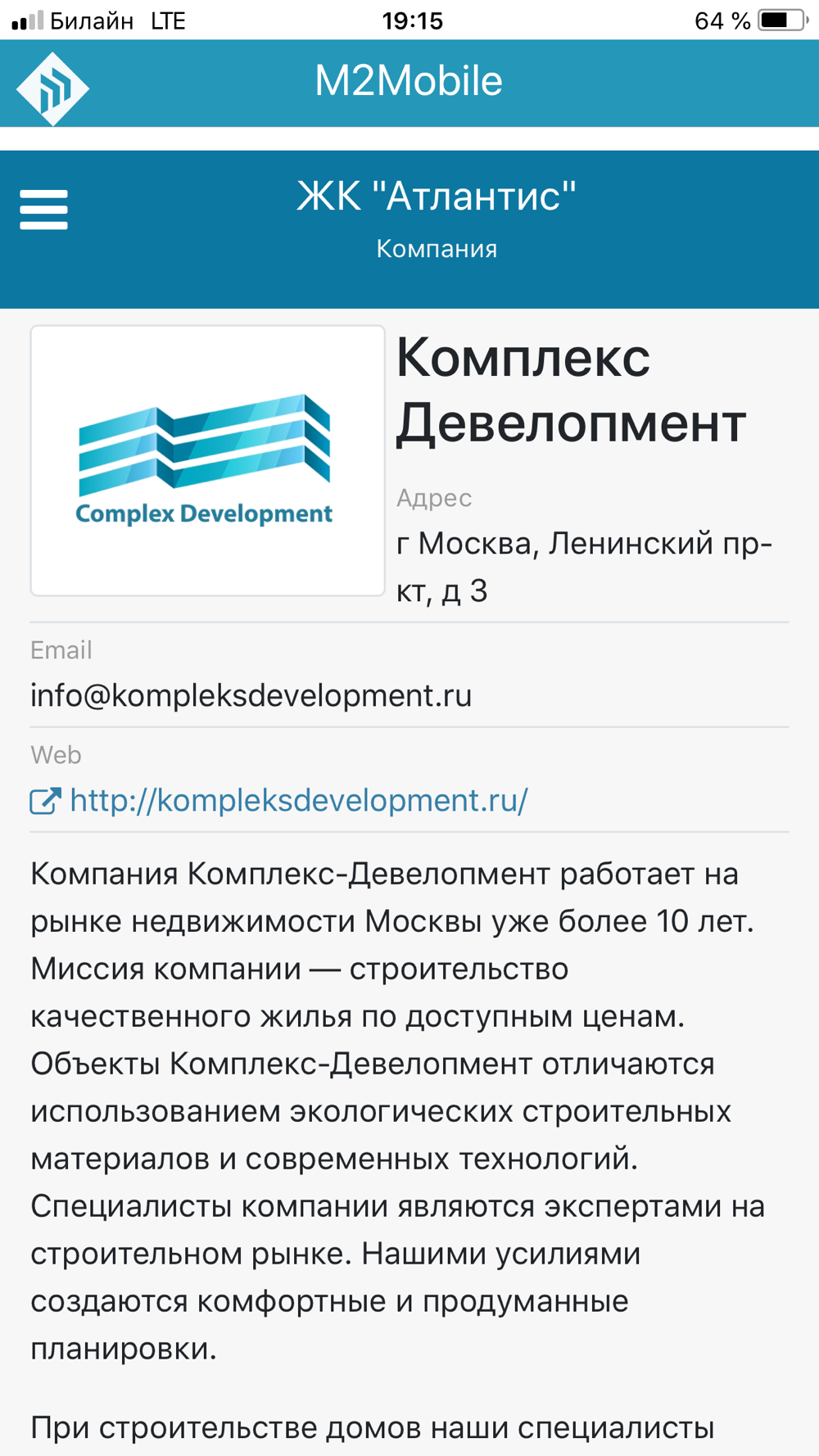 M2mobile - подбор партнеров программы лояльности, учитывающий местоположение жилого комплекса.