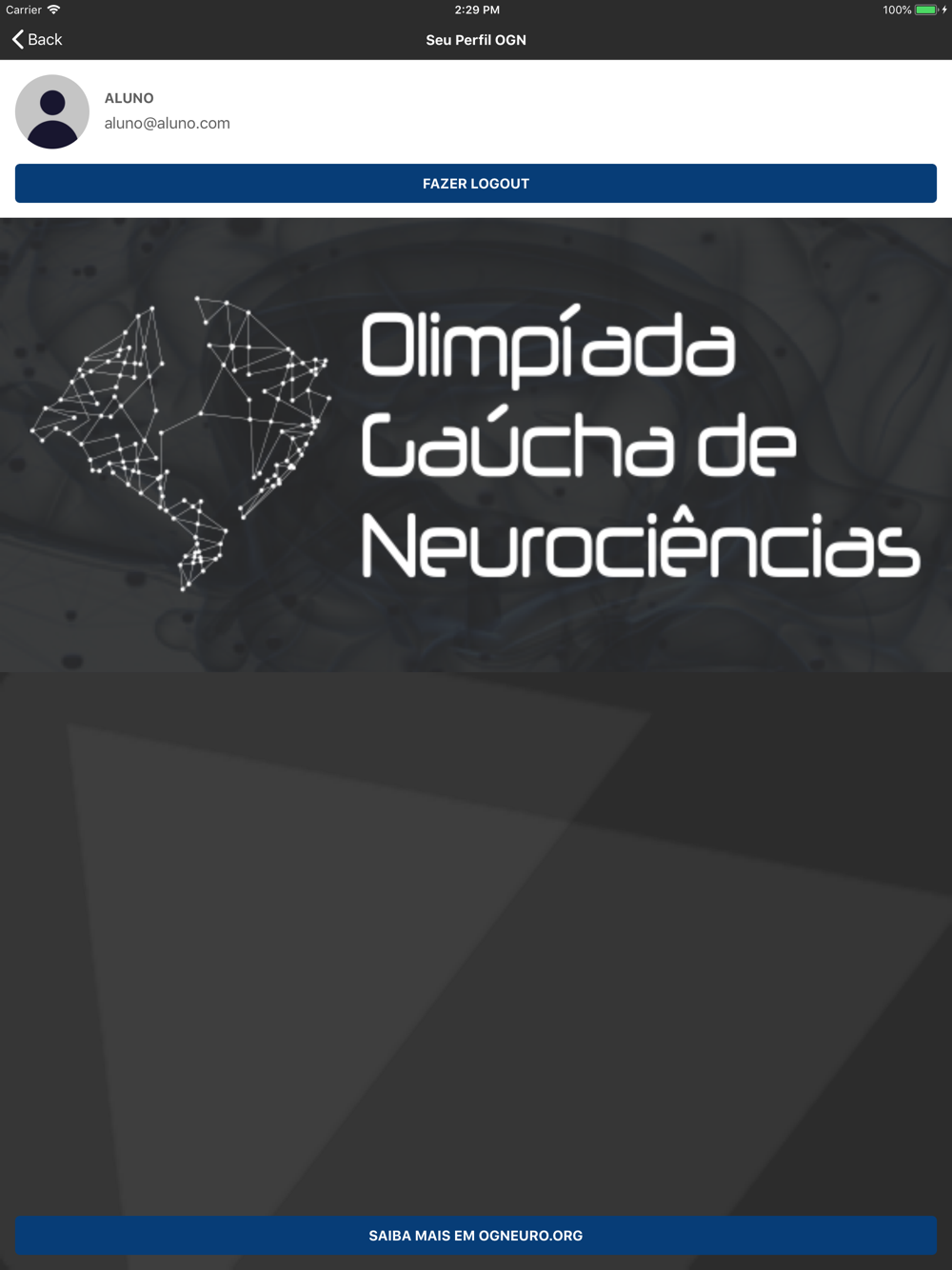 A OLIMPÍADA GAÚCHA DE NEUROCIÊNCIAS – OGN é um evento gratuito voltado a alunos do ensino médio de qualquer escola do Rio Grande do Sul.