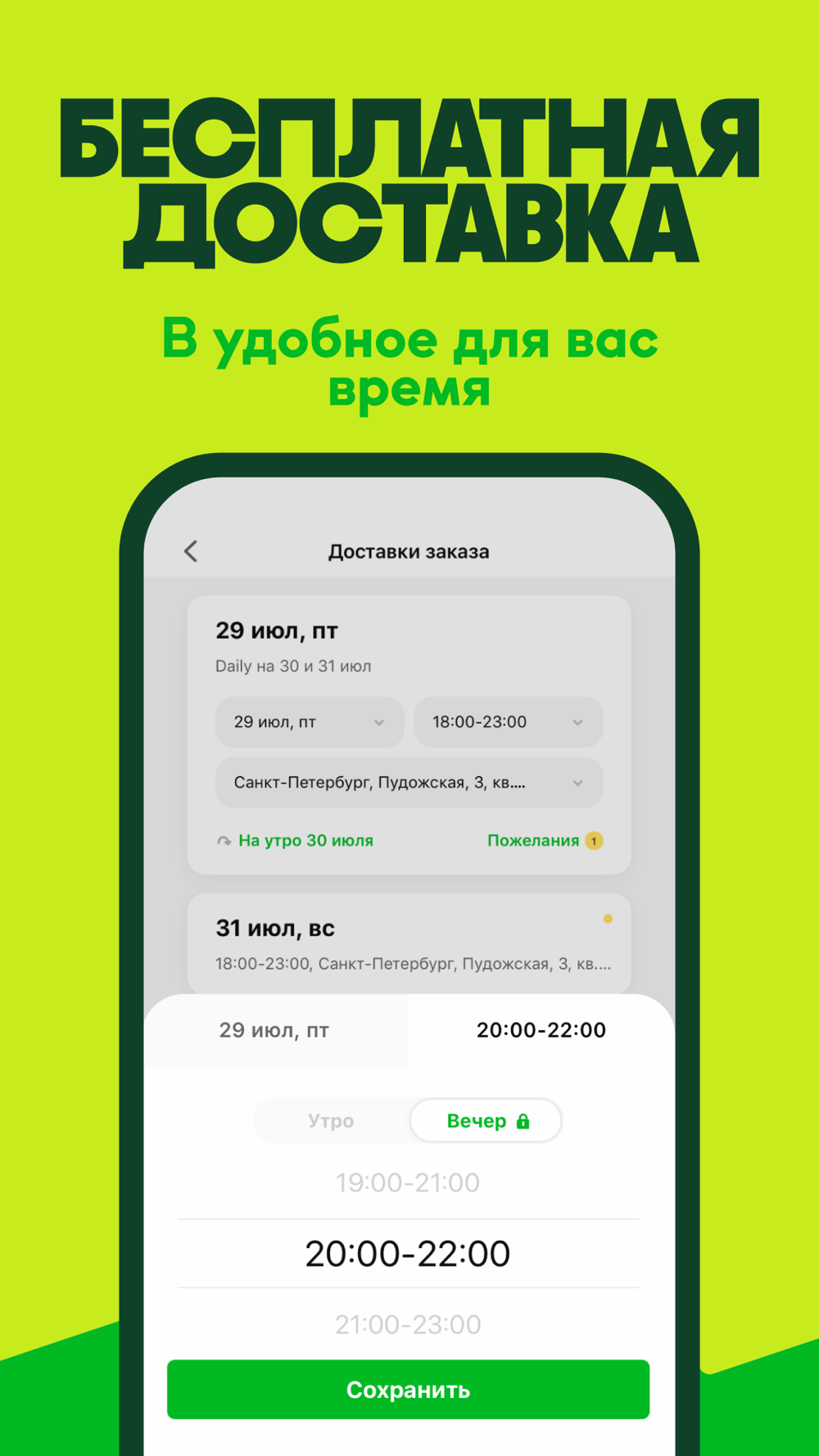 • Оформлять доставки на удобное время.