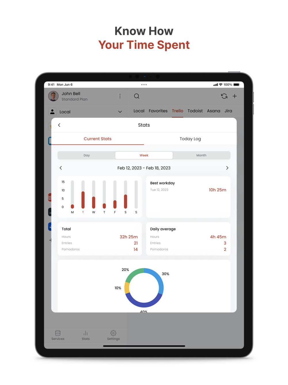 Don’t enter tasks manually! Connect your task management system and start using the RoundPie App just in 3 minutes.