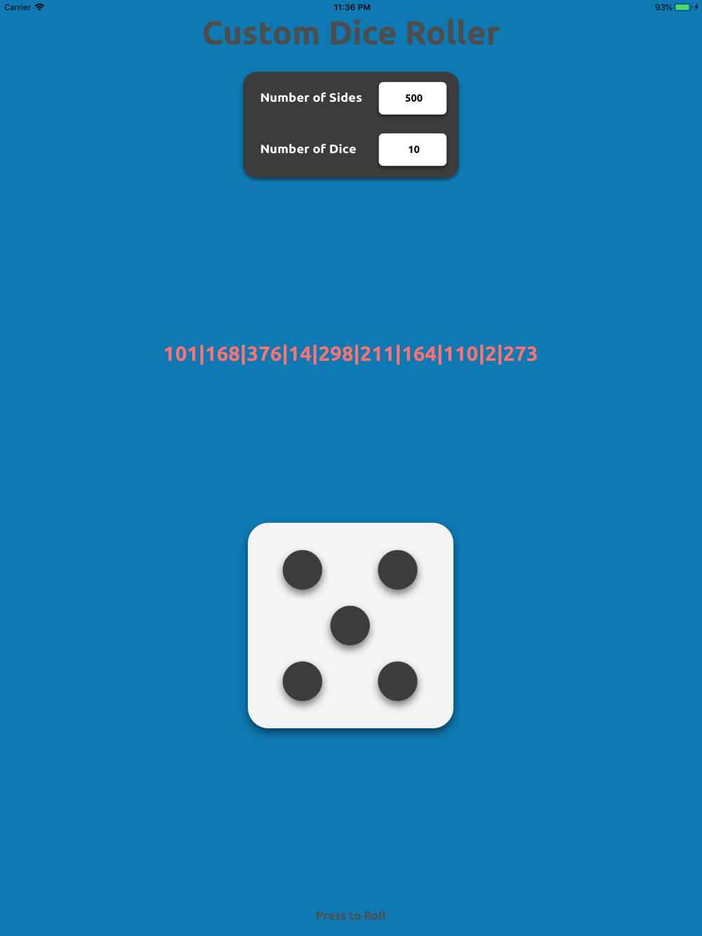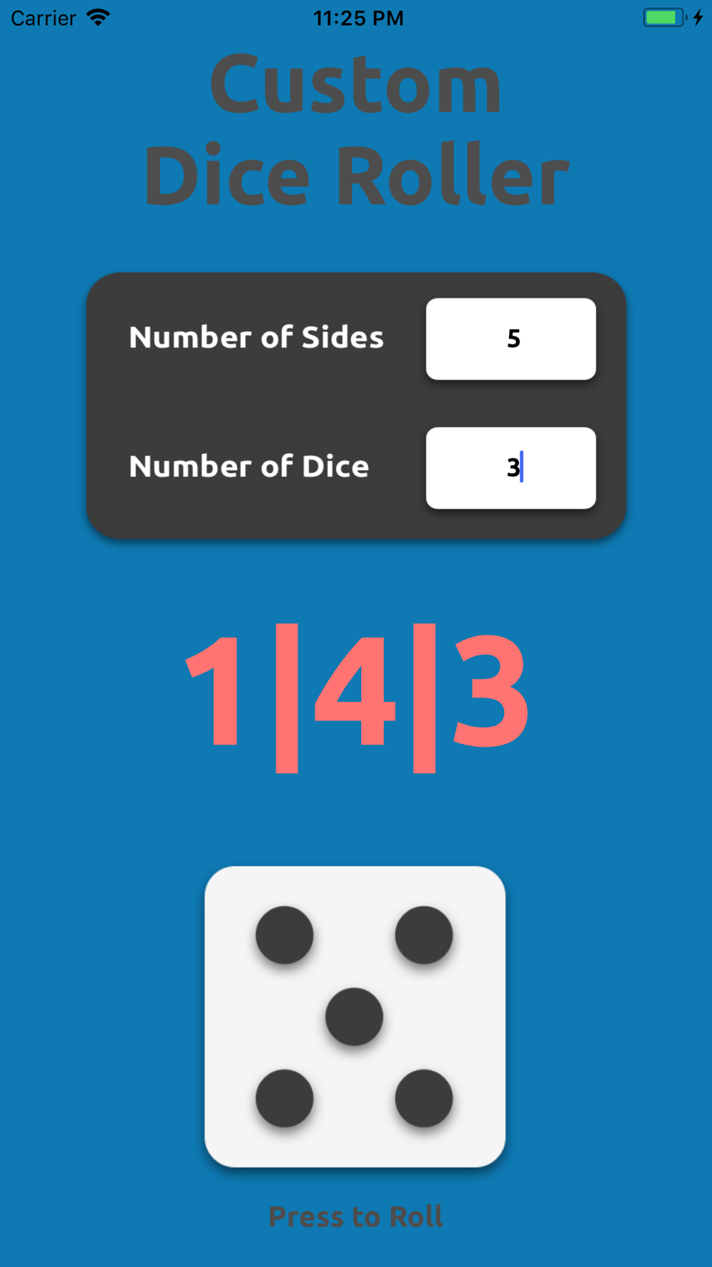 This is a simple die rolling utility. Users can enter their desired number of sides and dice!