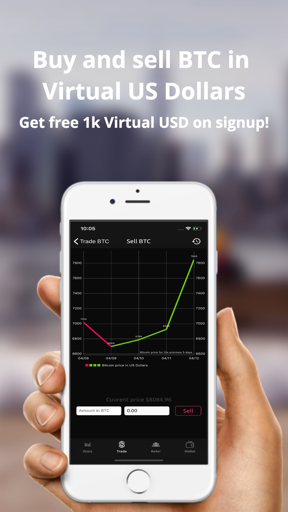 Bitcoin Trading Virtual offers you a way of trading the most popular cryptocurrency with Virtual USD. Moreover, after creating an account, you will get a bonus of 1000 Virtual US dollars so you can start buying some BTC and filling up your own virtual wallet.