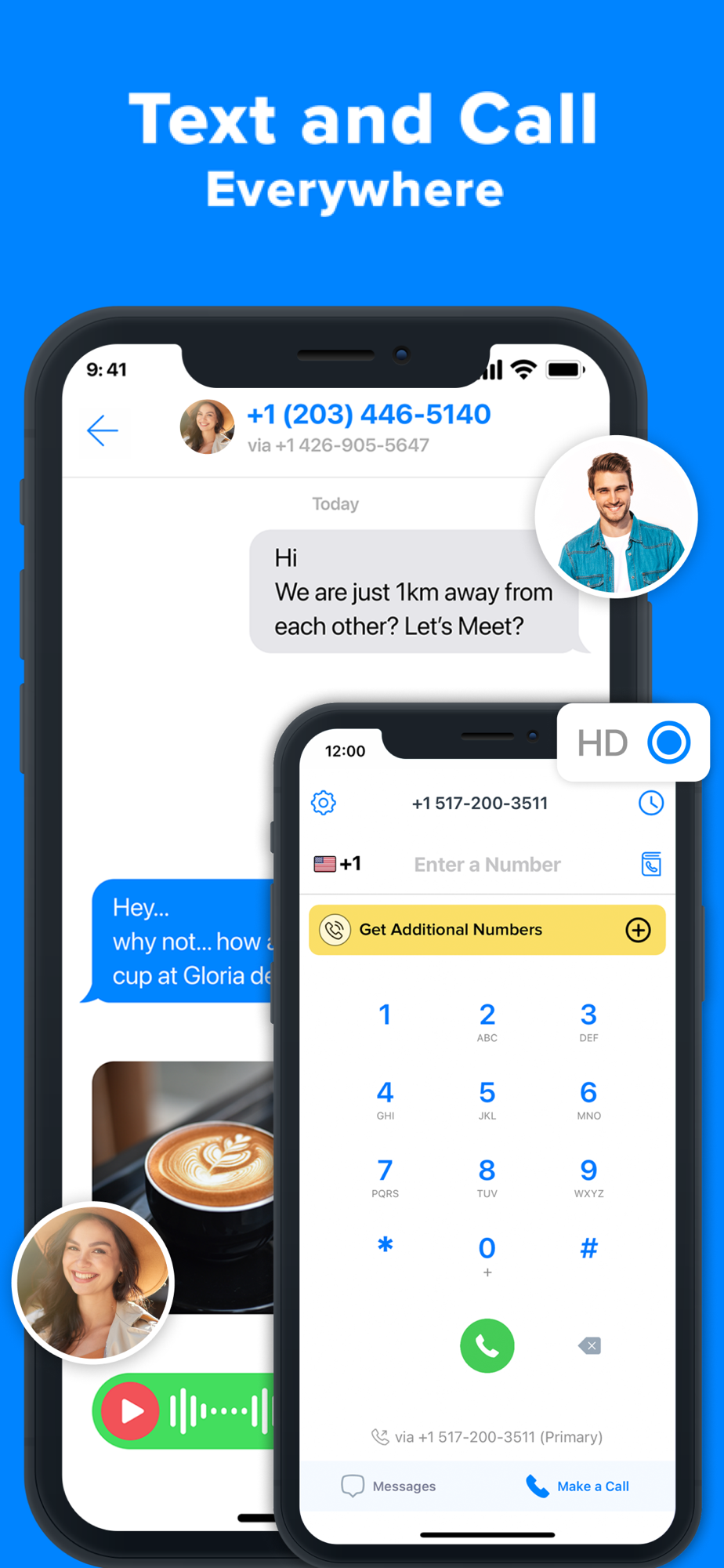 With 2nd phone number app App experience an ideal phone messaging and calling system for your business. Choose a number for any area code of your choice and start messaging and calling.