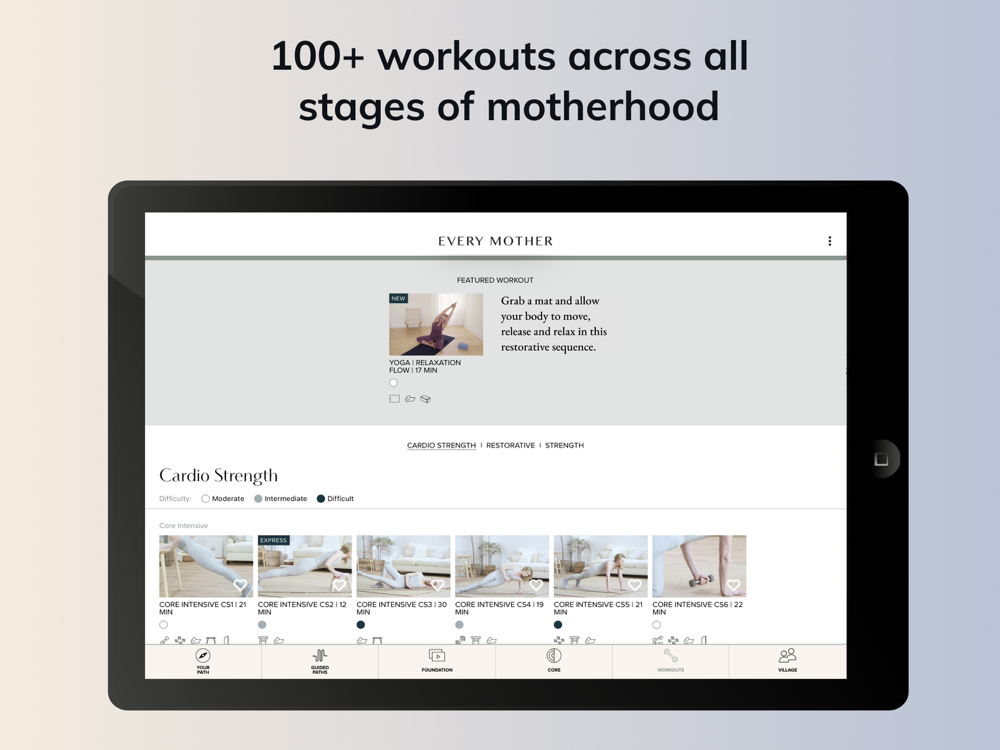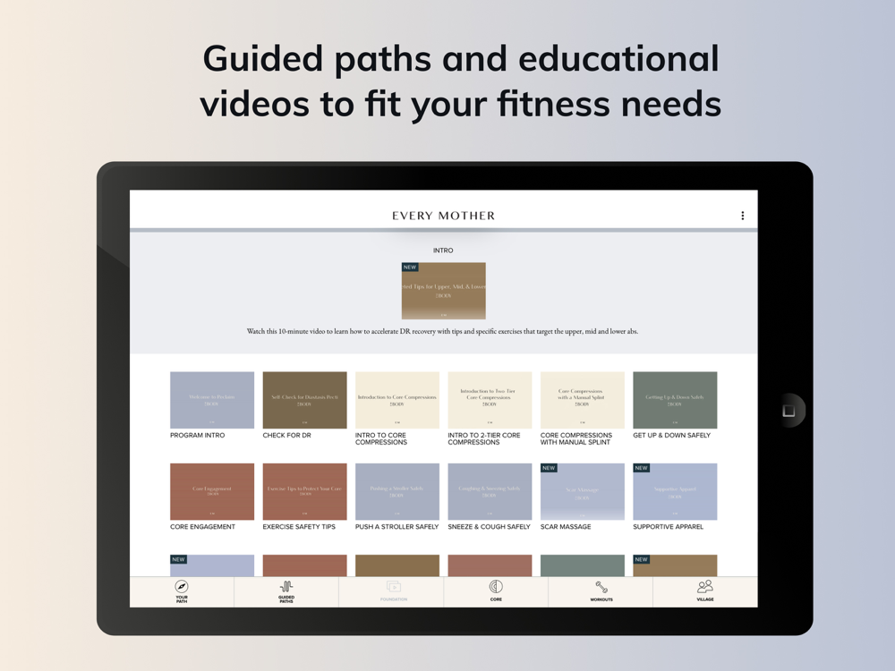 Every Mother is a research-based, on-demand personalized exercise plan tailored to address your unique core and pelvic floor needs at any life stage, whether you need help with one or multiple symptoms. We exist to educate women on their core and the pelvic floor – a set of invisible muscles at the center of everything we do. Making this care accessible to every woman at any fitness level as she navigates the changes in her body is what we work towards every day. Our exercises are clinically proven to resolve diastasis recti and your daily curated custom exercise plan is created in collaboration with pelvic floor physical therapists. An Every Mother personalized exercise plan can be accessed anytime, anywhere, and the 10 to 15-minute express exercise regimens seamlessly fit busy lifestyles.