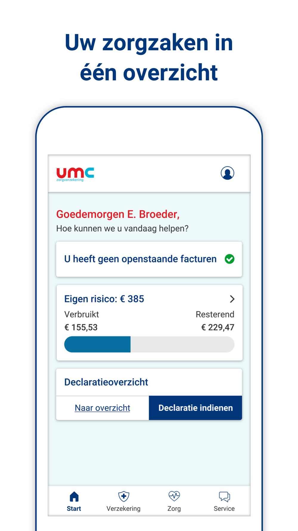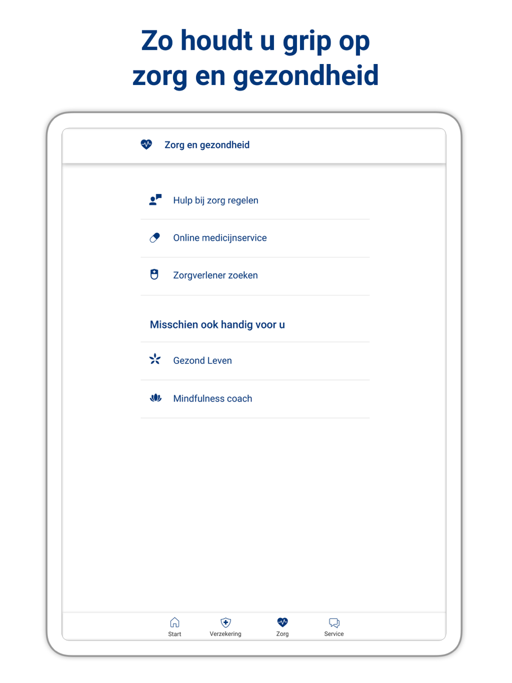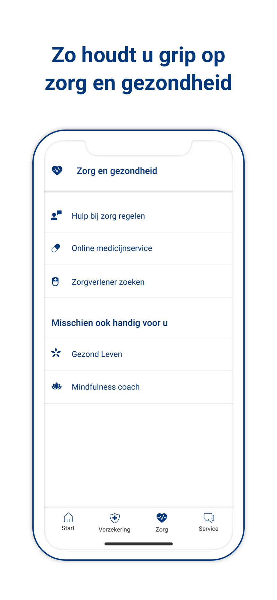 Gezonder leven is niet altijd makkelijk. Daarom helpen we u graag met handige services rondom gezondheid. En heeft u toch zorg nodig? Dan kunt u via onze app snel en gemakkelijk uw zorgzaken regelen. Voor uzelf of voor anderen op uw polis.