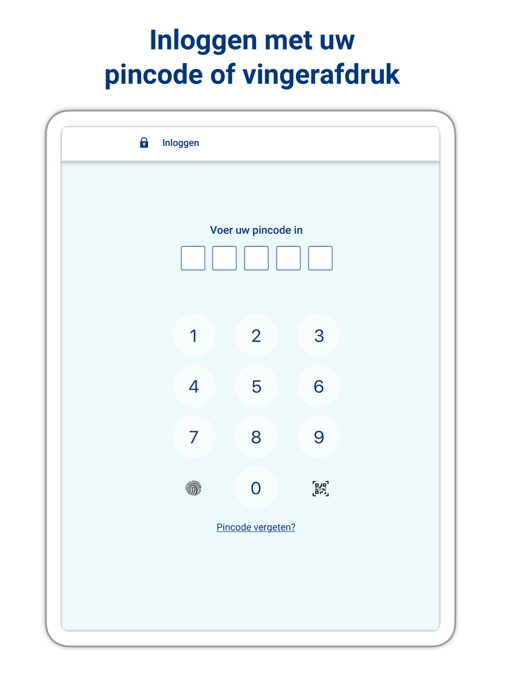 Daarna opent u de app met uw persoonlijke pincode, Touch ID of Face ID. Veilig en snel!