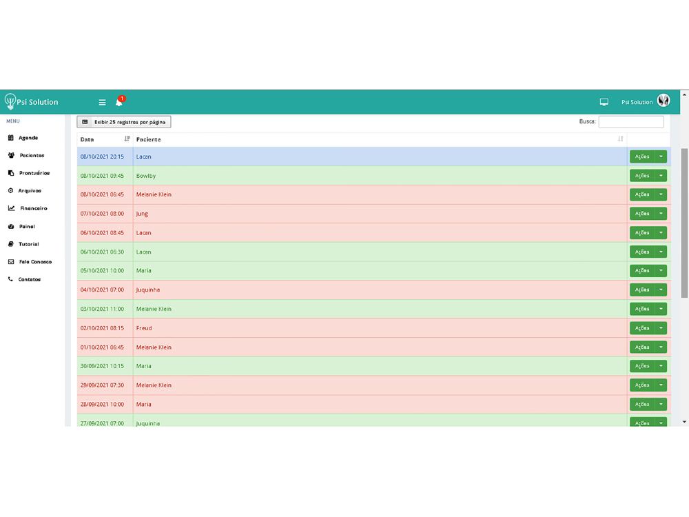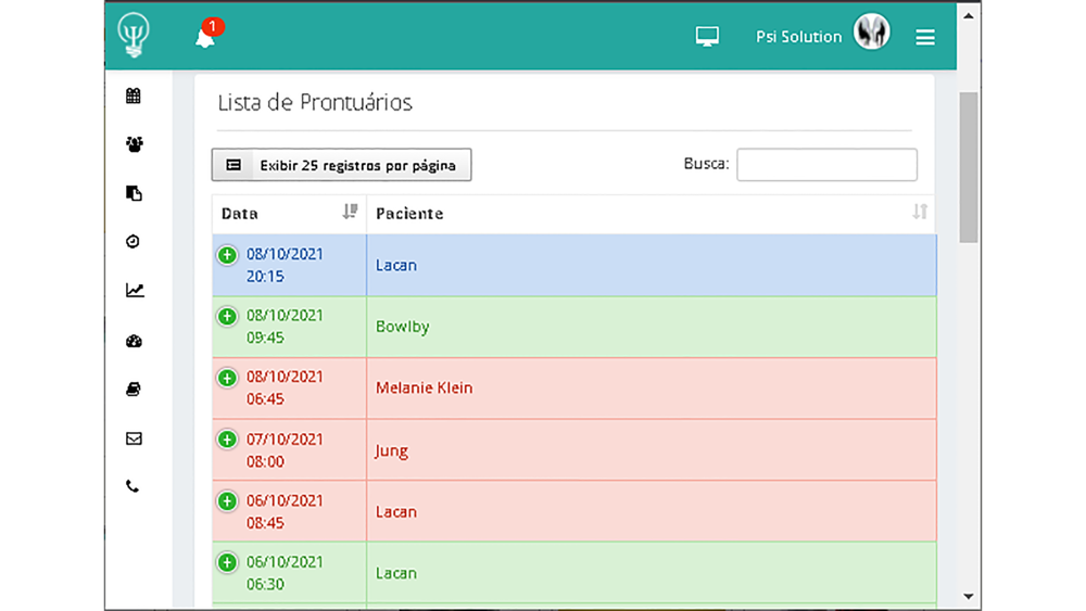 Psi Solution é a solução definitiva para gerenciar a vida do terapeuta em tarefas rotineiras como Cadastramento, Agendamento, Armazenamento seguro de prontuários e Controle financeiro. É um serviço de alta confiabilidade e disponibilidade para manter suas informações e de seus pacientes em perfeita Segurança.