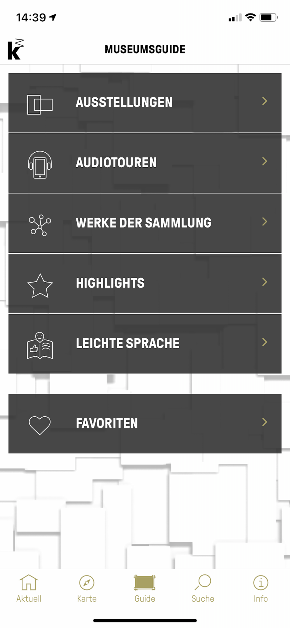 • Karte mit Touchfunktion für die Standortanzeige der Sammlungs-Werke, Ausstellungen und Guides