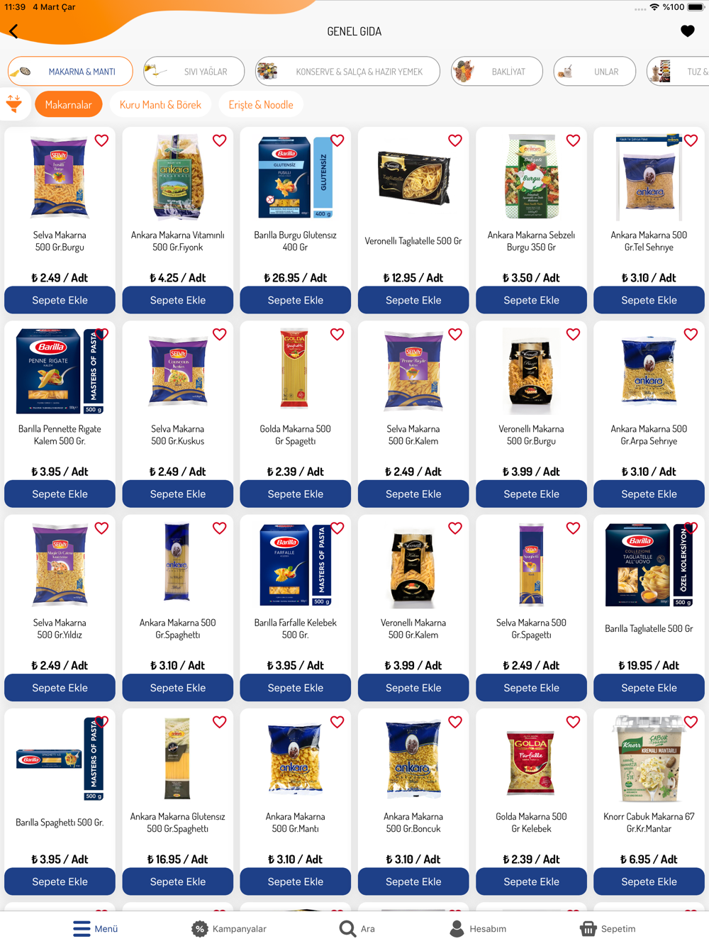 Binlerce ürün tek bir uygulama ile cebinizde. Meyve sebze gibi taze ürünler, et, şarküteri ürünleri, unlu mamüller, temizlik, kişisel bakım ürünleri, atıştırmalıklar ve içecekler gibi onlarca kategoride binlerce ürün parmaklarınızın ucunda. Bir marketten alabileceğiniz ne varsa hepsi tek bir uygulamada. Kanun gereği online siparişlerde tütün mamülleri ve alkol satışı yapılamamaktadır.