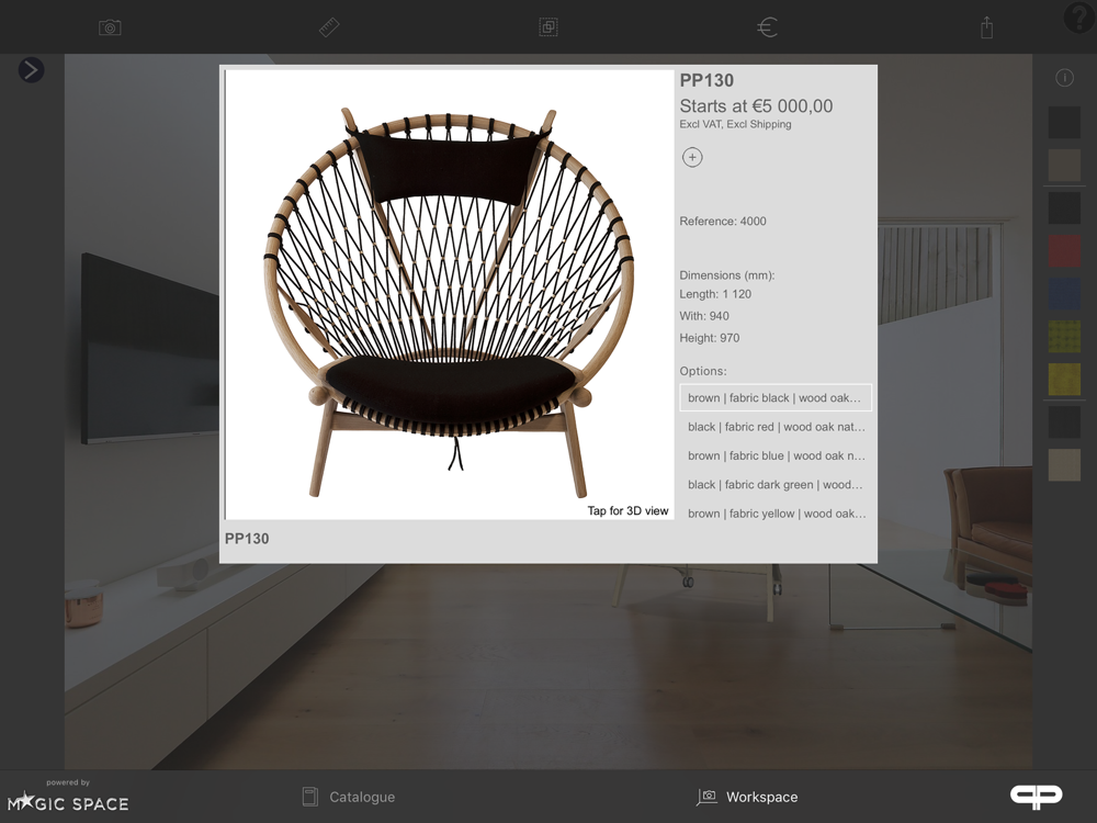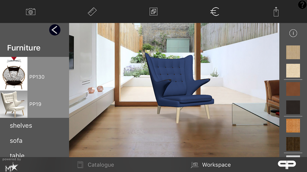 “pp møbler” is an application that allows you to view and test 3D products using real photographs of environments you what to decorate.