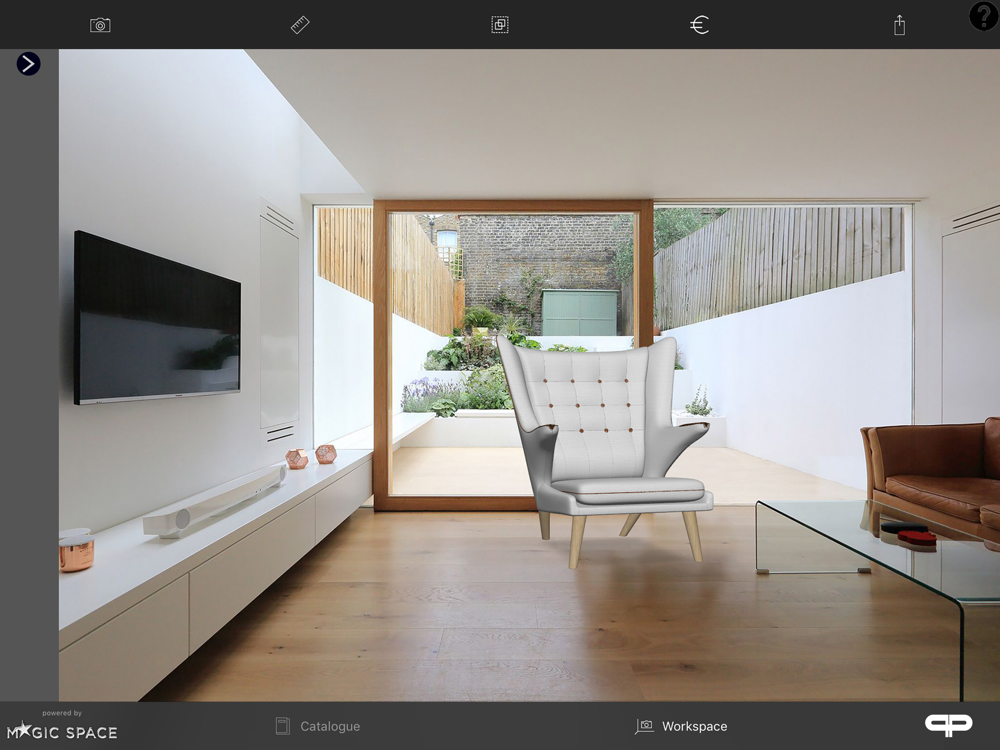 It’s intuitive and easy to use. Just take a picture of the space you want to customise or access stored photos, and drag and drop the items you want to see on workspace.