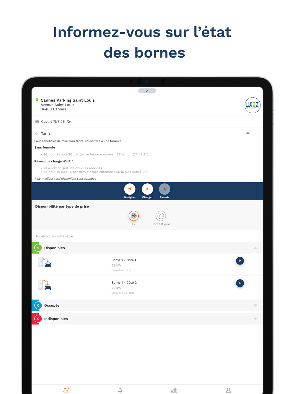 • Géolocalisez les bornes WiiiZ et leur disponibilité