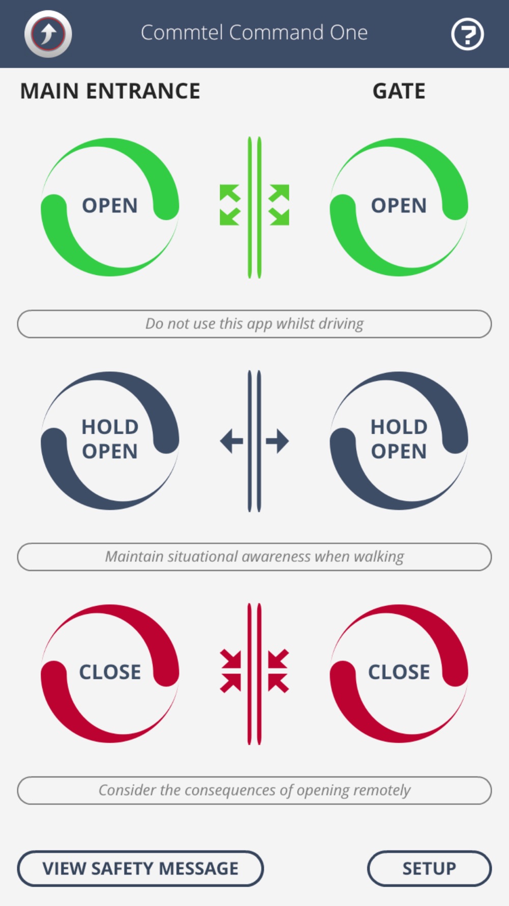 Before using this app, please consider the implications of opening your entrance by the tap on a touchscreen when not in sight of, nor in communication with your gates or barriers.
