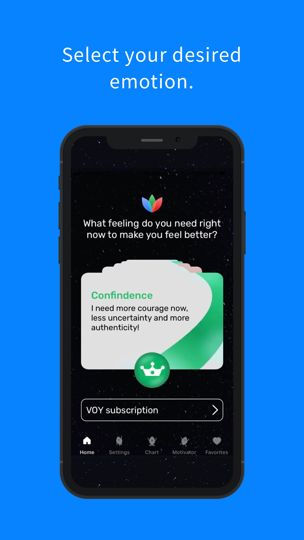 During each session, Voy measures your current mood using a scale from 1 to 10. Afterwards, you can evaluate your progress and clearly see which meditation helps you best.