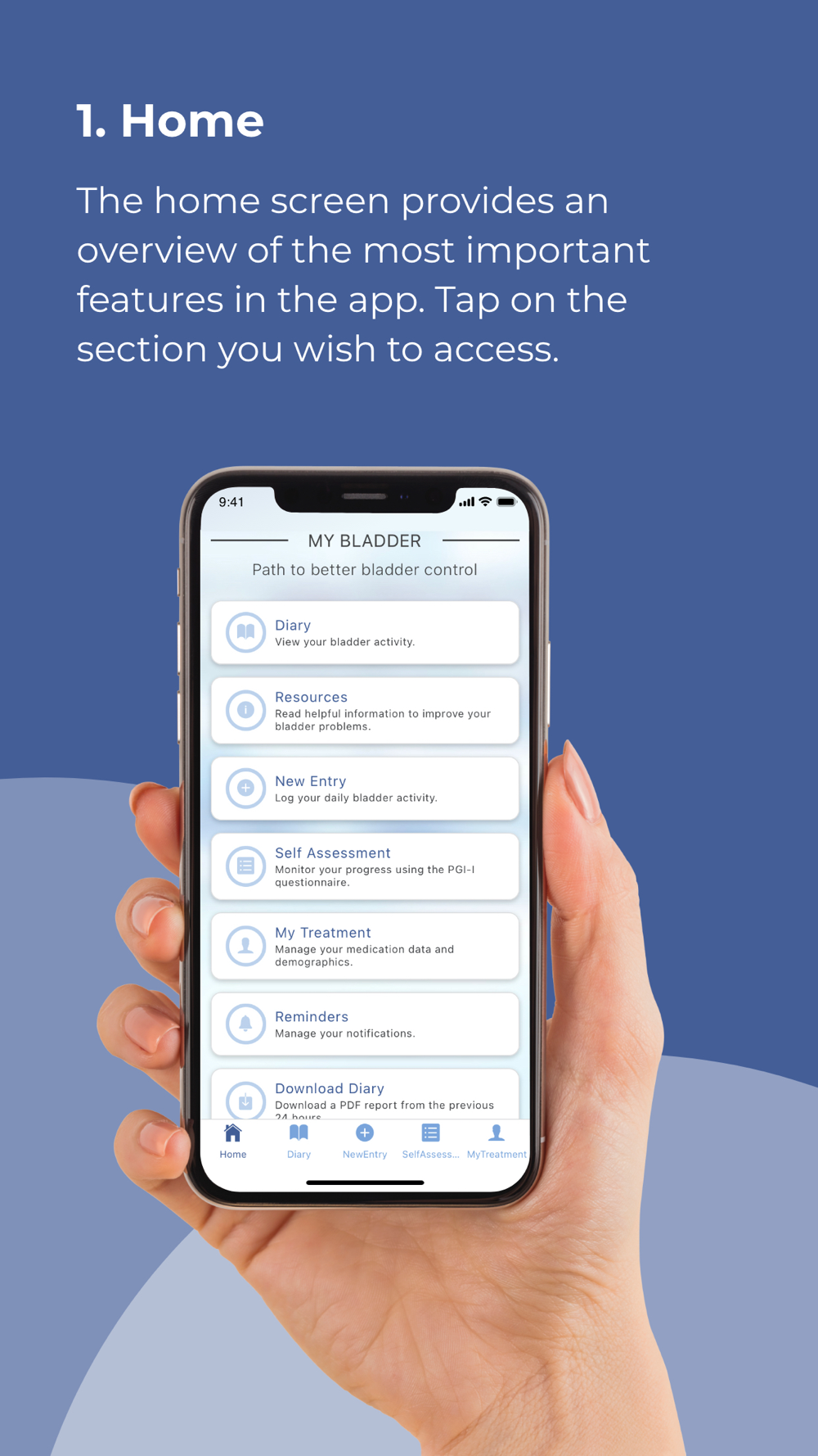 - See a graphical overview of bladder acitivty via the Bladder Diary Data Visualization, and receive updates via notifications