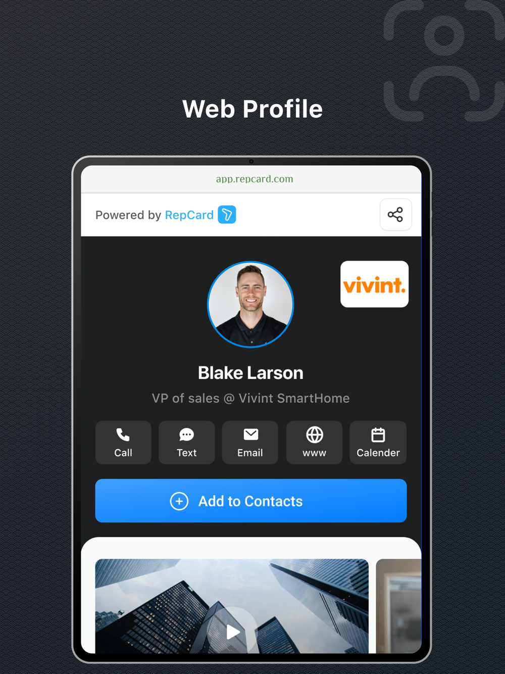 RepCard with images, videos, links, referrals, and reviews in minutes. The best part is that you can