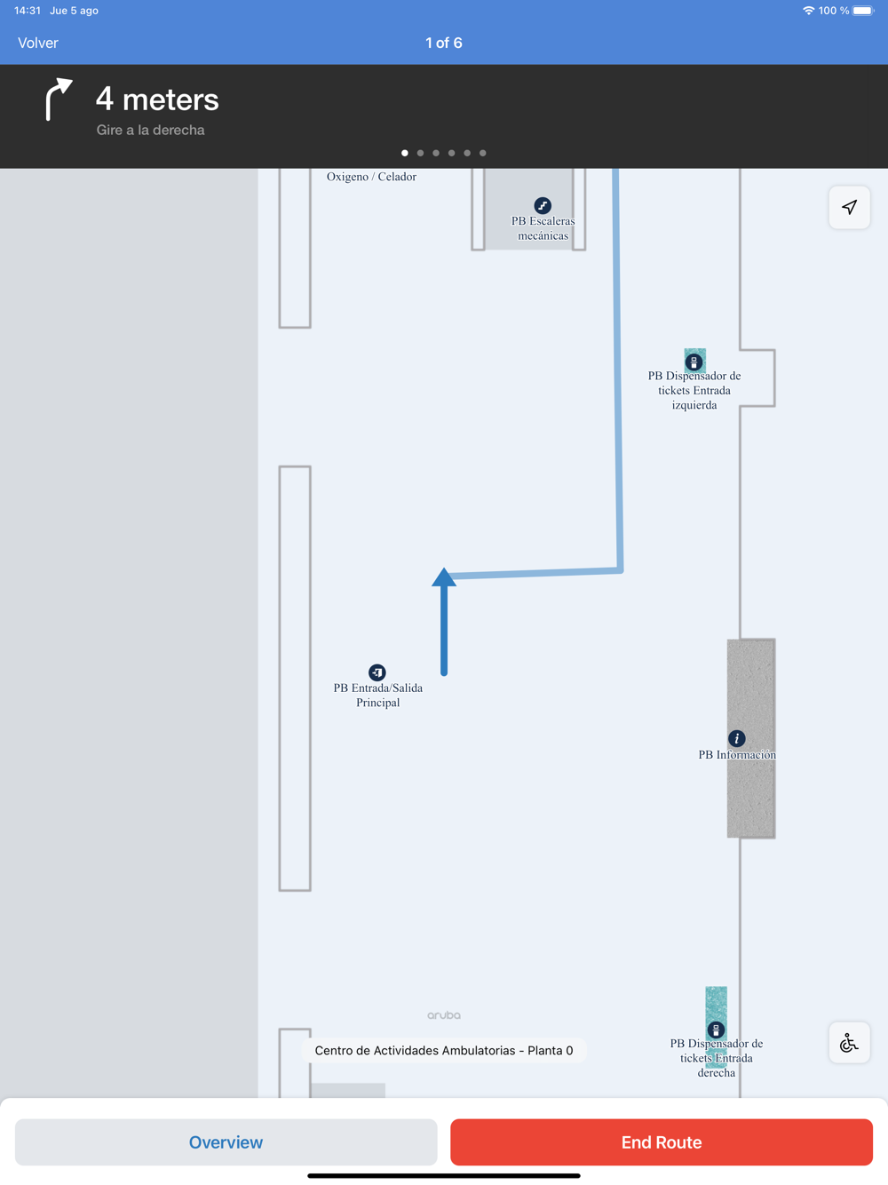 La aplicación orienta a los pacientes que acuden a Consultas Externas en el Centro de Actividades Ambulatorias hacia zonas de interés como aseos, cafeterías, etc, o a las salas de espera correspondientes a la consulta en la que está citado. Para esta funcionalidad, se requiere activar bluetooth y GPS.