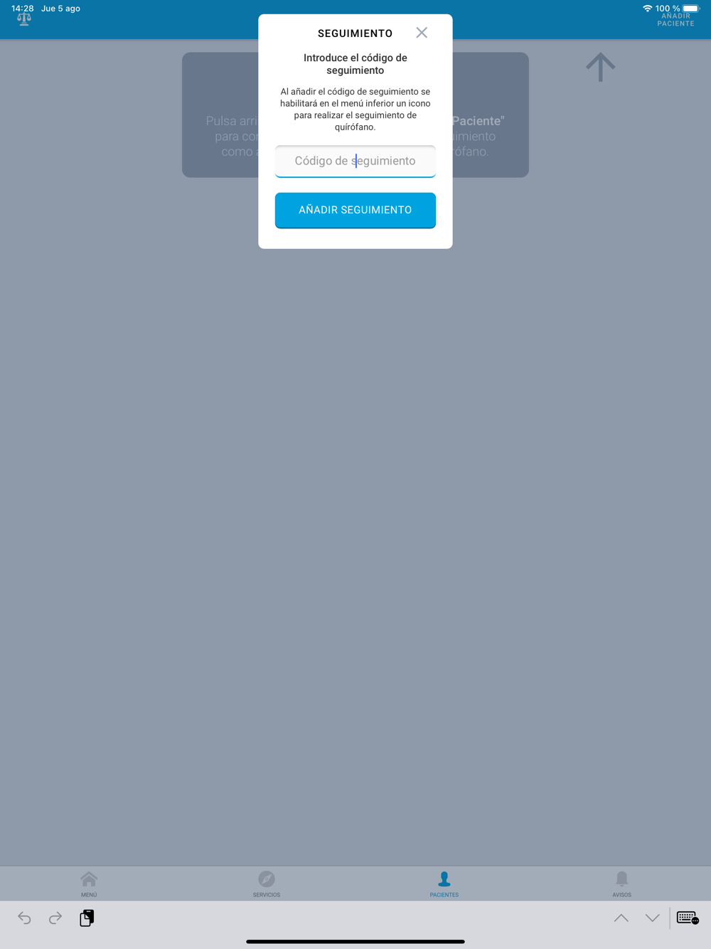 En el caso de seguimiento de un paciente en quirófano en el Edificio Materno-Infantil, no es necesario que el usuario de la aplicación sea paciente del Hospital; basta con descargarla e introducir el código que se facilita al paciente.