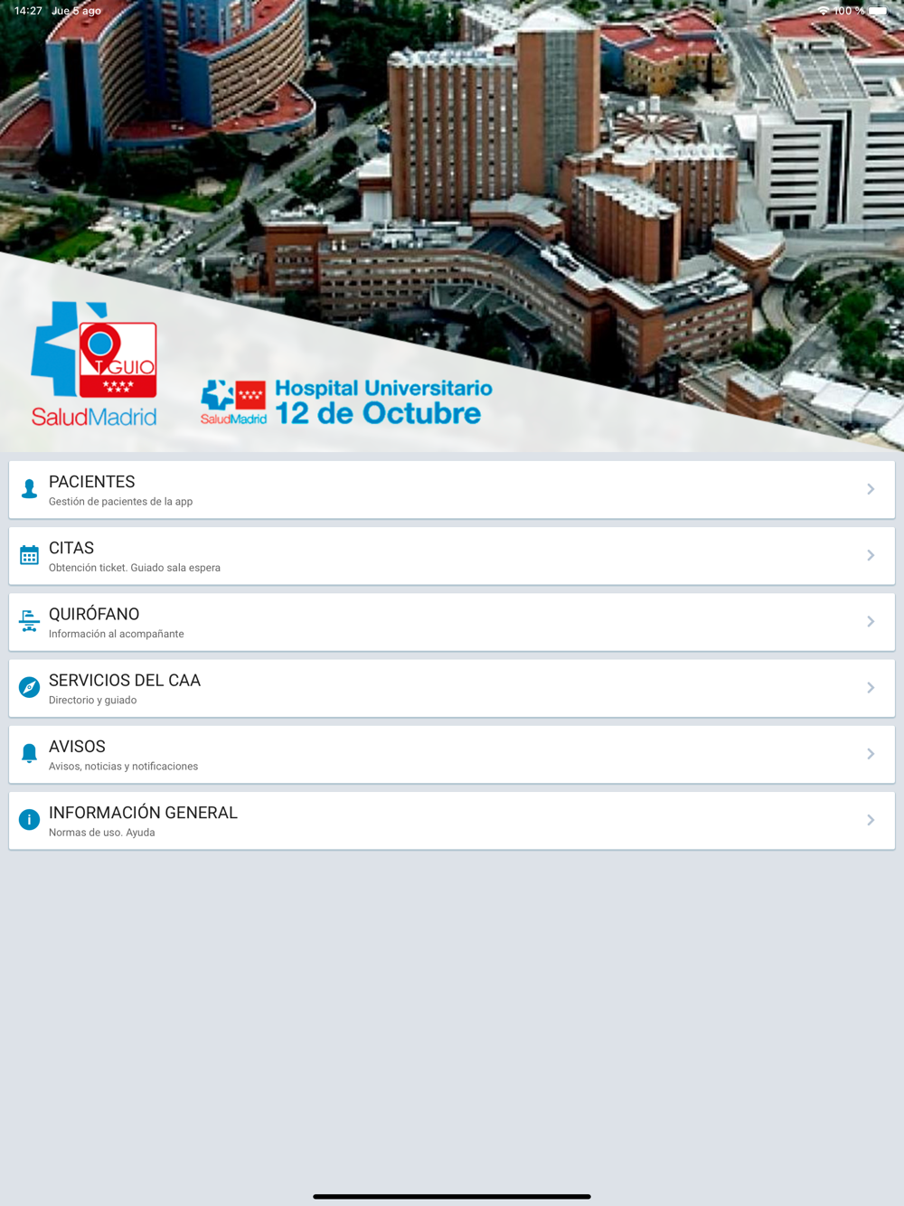 TGUIO H12O ofrece a los usuarios de consultas externas dentro del Hospital 12 de Octubre la posibilidad de obtener el ”ticket”, al tiempo que avisa al médico de la llegada a la consulta. Una vez finalizada la consulta, podrá descargar el justificante de asistencia.
