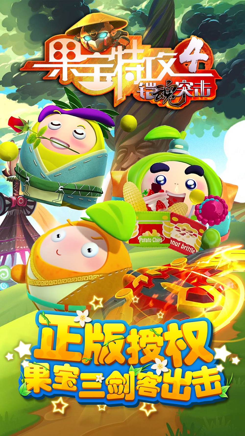 《果宝特攻之铠魂突击》是由超火热动画片《果宝特攻》官方授权打造的一款Q版机甲风横版动作冒险手游。玩家将扮演来自剑客世家的橙留香,和聪明善良的菠萝吹雪、执着有爱心的陆小果、全能实力派的小果叮一起闯荡水果江湖,匡扶正义,解救村民。炫酷神兵,让你所向披靡!!
