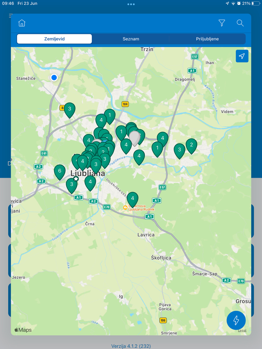 Poiščite najbližjo električno polnilnico na zemljevidu.