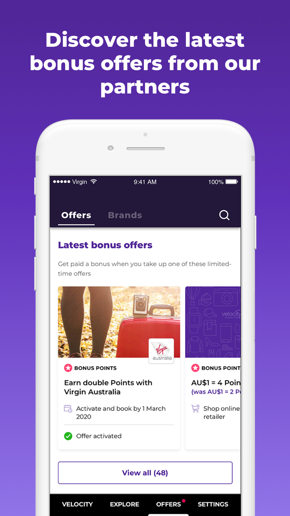 Don’t miss out on special offers from hundreds of Velocity’s partners. Discover all the ways you can earn to get the most out of the program, including shopping through the App.